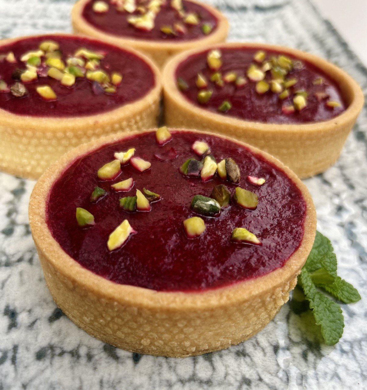 Тарт з фісташкою та малиною